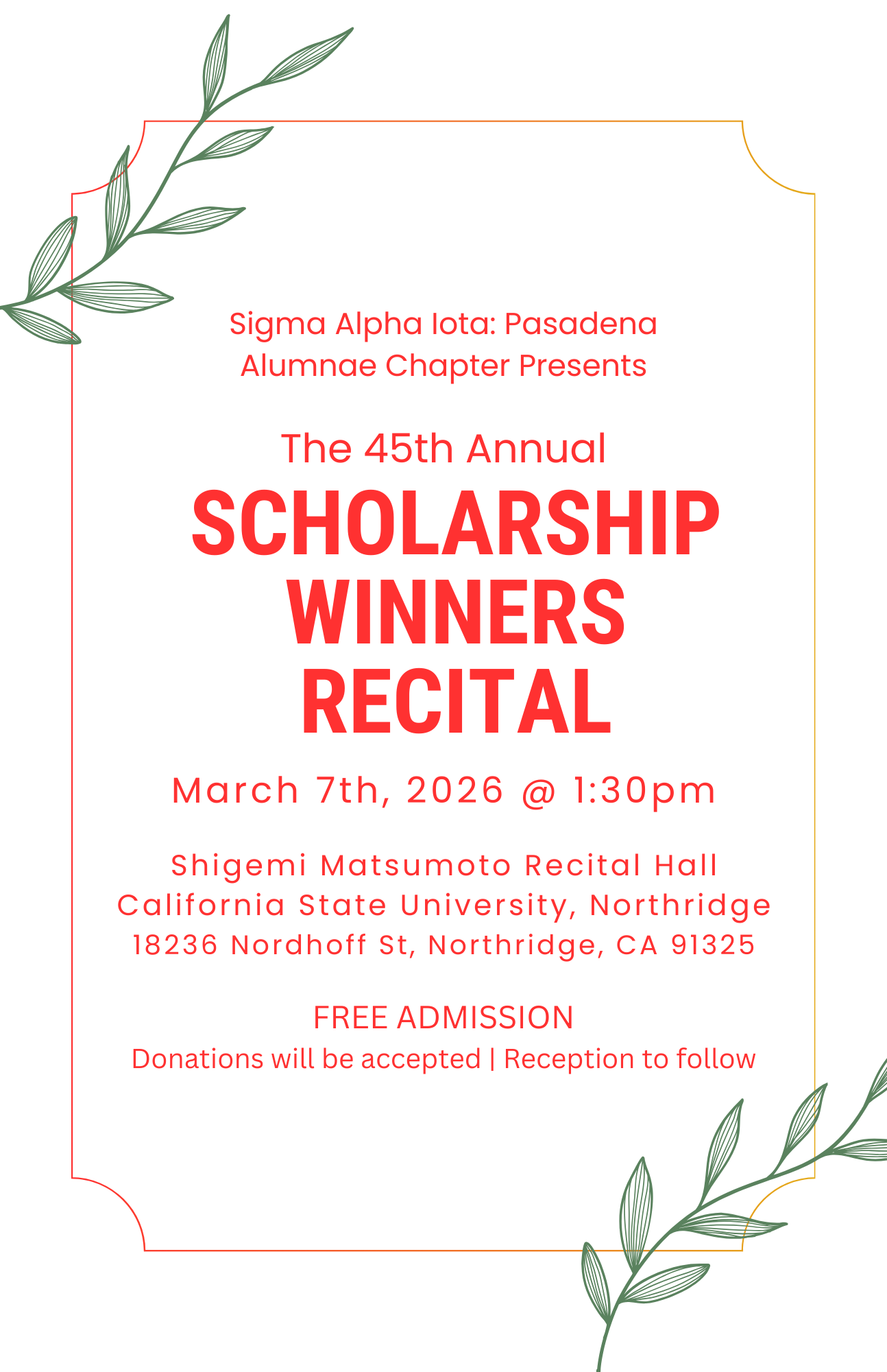 Winners must be able to perform at the Winner's Recital at California State University Northridge (CSUN) on Saturday, March 7, 2026 (1:30pm to 3pm).